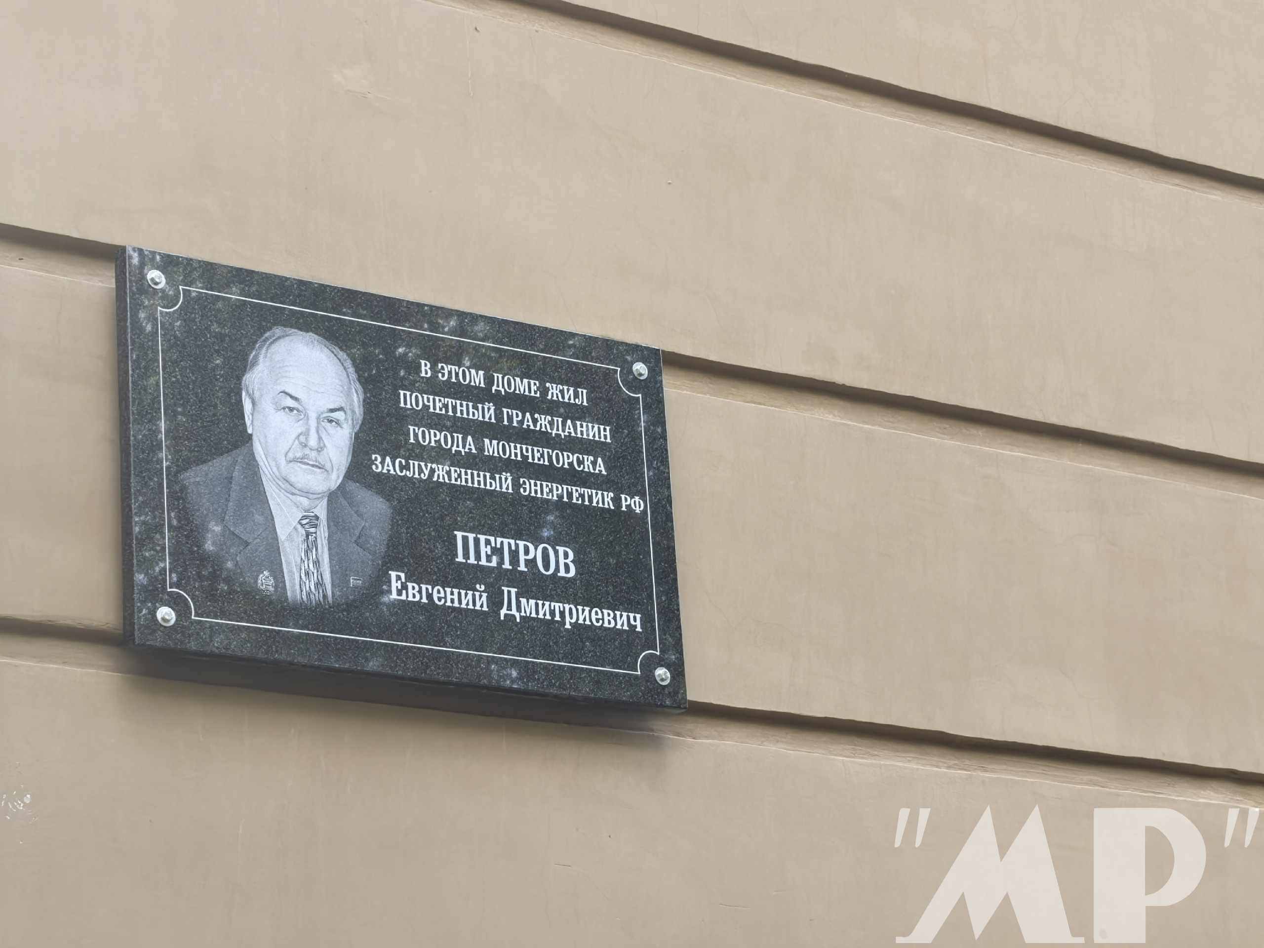 На доме № 7 по проспекту Металлургов торжественно открыли мемориальную доску почётному гражданину Мончегорска, заслуженному энергетику Российской Федерации Евгению Петрову.